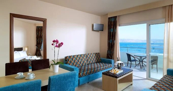 Descriere: Molos Bay Hotel este un hotel de 4 stele situat in Kissamos, in regiunea Chania din Creta, oferind un cadru relaxant chiar langa mare. Construit amfiteatral in Golful Mavros Molos, hotelul ofera privelisti spectaculoase catre Marea Cretei si o atmosfera linistita, potrivita pentru familii si cupluri. Proprietatea dispune de suite si junior suite spatioase si combina ospitalitatea cretana cu facilitati moderne pentru un sejur confortabil.