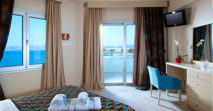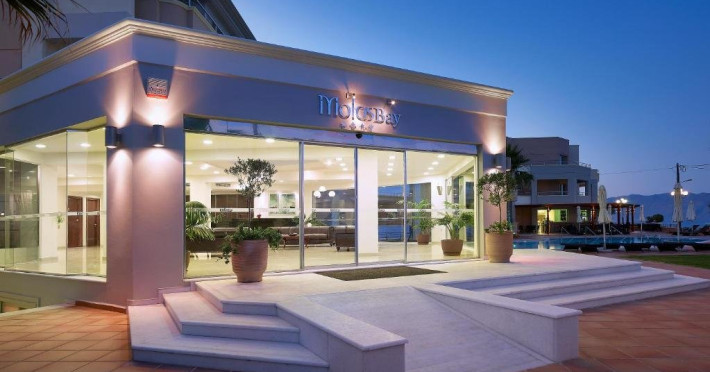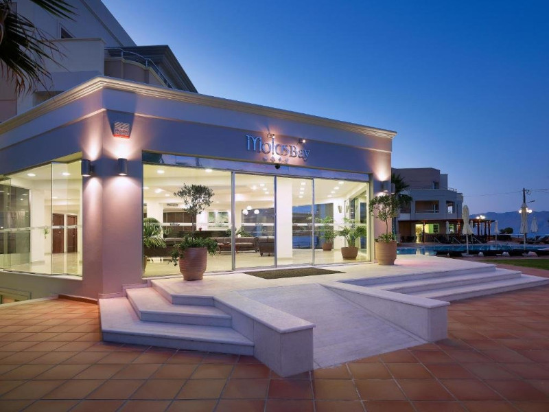 HOTEL Molos Bay 4* Descriere: Hotelul Molos Bay este un hotel nou, construit intr-un golf superb, la cativa metri de plaja. Localizare: Hotelul este situat in Kissamos, la 32 Km de orasul Chania. Dotari camere: hotelul dispune de 10 apartamente cu doua camere si 33 apartamente cu o singura camera. Toate apartamentele mobiltate complet au vedere spre Marea Egee. Fiecare apartament dispune de balcon propriu, aer conditionat, telefon, mini-frigider, TV, baie cu dus, uscator de par. Facilitati: receptie non-stop, restaurant-bar, piscina pentru copii si adulti cu bar, salon cu TV prin satelit, sala de gimnastica, sauna, rent-a-car, room service, spalatorie, WI-FI, seif, parcare gratuita si servicii de taxi. Plaja: de nisip Clasificarea oficiala: 4*, Clasificarea tour-operatorului: 4* Site: www.molosbayhotel.gr
