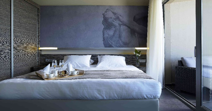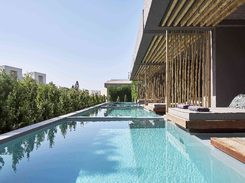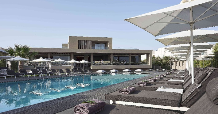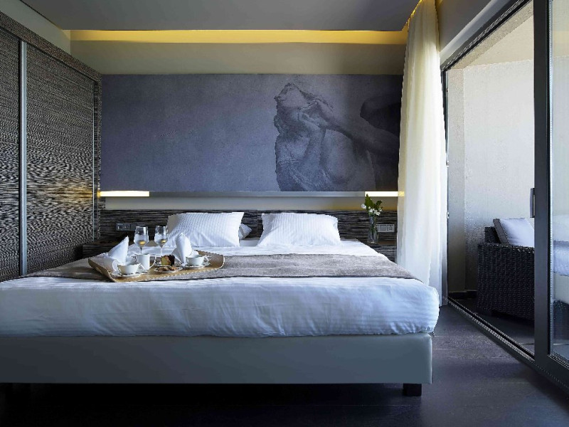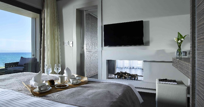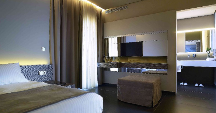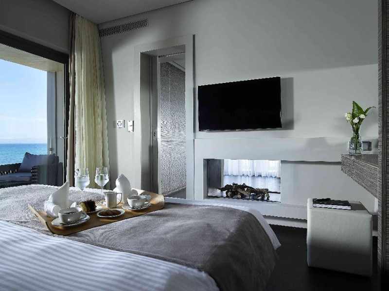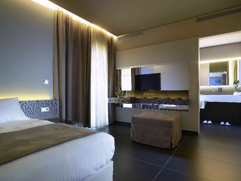Dotari camere: Tipuri de camera: camera comfort garden view (are o suprafata de -22 m2; cu pat matrimonial sau 2 paturi; cu balcon sau terasa) executive cu vedere partiala la mare (are o suprafata de 20m2 cu terasa de 40m2), suita garden view ( camera pt max 4 adulti cu suprafata de 32m2), suita sea cu vedere la mare (camera pt 4 adulti cu suprafata de 35m2), maisonette cu vedere la gradina ( camera pt 2 adulti cu suprafata de 33m2 cu terasa de 20m2), executive maisonette outdoor jacuzzi (camera pt 2 adulti cu surpafata de 33m2, terasa de 20m2), comfort room cu piscina privata (camera pt 2 adulti cu suprafata de 22m2, terasa de 32m2), design room cu piscina privata (camera pt 2 adulti cu suprafata de 24m2, terasa de 40/50m2), luxury maisonette cu piscina privata (camera pt 2 adulti cu suprafata de 32m2, terasa de 31m2), elegance open plan suita cu vedere la gradina si piscina privata (camera pt 2 adulti cu suprafata de 34m2, terasa de 32m2), premie open plan suita cu piscina privata (camera pt 2 adulti cu suprafata de 33m2, terasa de 46m2), suita prezidentiala cu 2 piscine private (camerapt 6 adulti cu suprafata 97m2, terasa 110 m2). Toate camerele sunt dotate masina de pregatit cafea, televizor smart, uscator de par. aer conditionat, mini bar cu apa si soft drinks (in unele camere contra cost), seif, terasa, baie cu dus/vana.