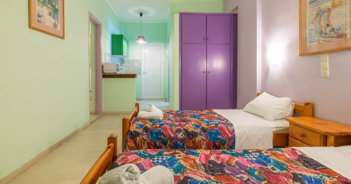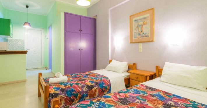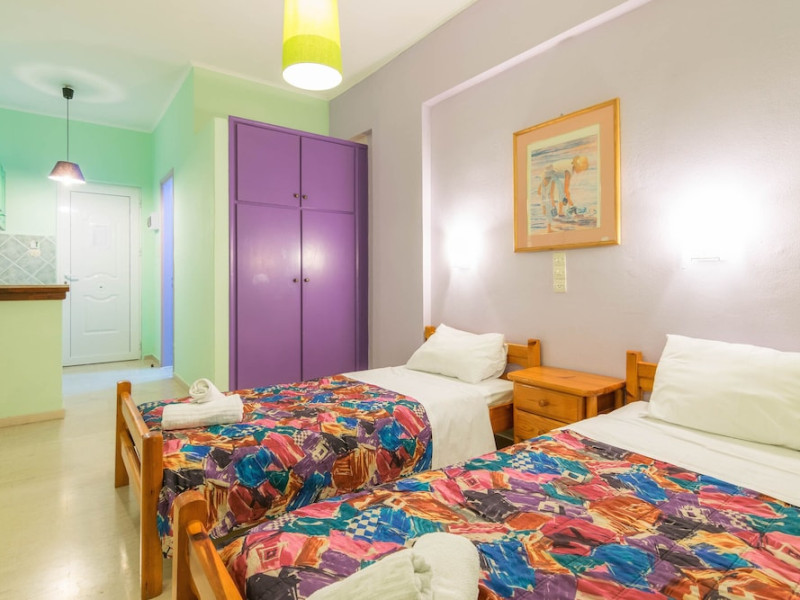 Near Agios Sostis Beach. When you a stay at Ni-Mar Studios Apartments in Zakynthos, youll be near the beach, just steps from National Marine Park of Zakynthos and Ionian Sea. This apartment is 1.5 mi (2.5 km) from Laganas Beach and 2.8 mi (4.6 km) from Kalamaki Beach. Make yourself at home in one of the 13 air-conditioned rooms featuring kitchenettes with refrigerators and stovetops. Rooms have private furnished balconies. Flat-screen televisions with digital programming provide entertainment, while complimentary wireless Internet access keeps you connected. Conveniences include safes and coffee/tea makers, and housekeeping is provided daily. Make use of convenient amenities, which include complimentary wireless Internet access and barbecue grills.