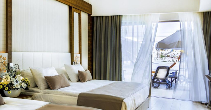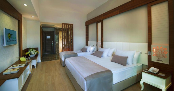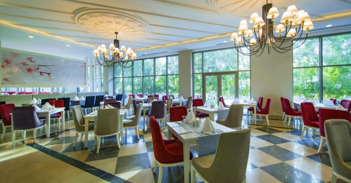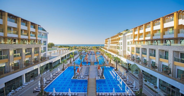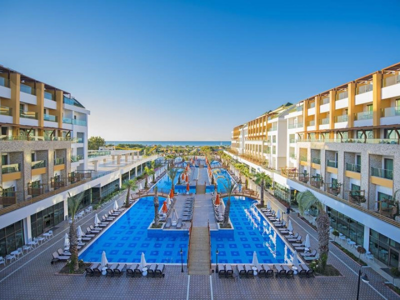 Facilitati hotel: Hotelul ofera oaspetilor sai urmatoarele facilitati: restaurant principal, 5 restaurante a la carte, patiserie, inghetata, 7 baruri, 2 piscine exterioare pentru adulti, piscina pentru copii, aquapark cu 6 tobogane pentru adulti si 12 pentru copii, piscina interioara, centru spa, sauna, hammam, centru fitness, programe de animatie, muzica live, discoteca, cinema, internet, tenis de masa, aerobic, step, volei pe plaja, yoga, pilates, basket, tenis. Servicii cu plata: bauturile premium, a doua rezervare pentru restaurantele a la carte, Script Premium Bar si Sunset Lounge Bar, fresh din fructe, room service, nocturna pentru terenul de tenis, sporturi acvatice, centrul de jocuri (biliard, bowling), masaj si alte tratamente in centrul spa.