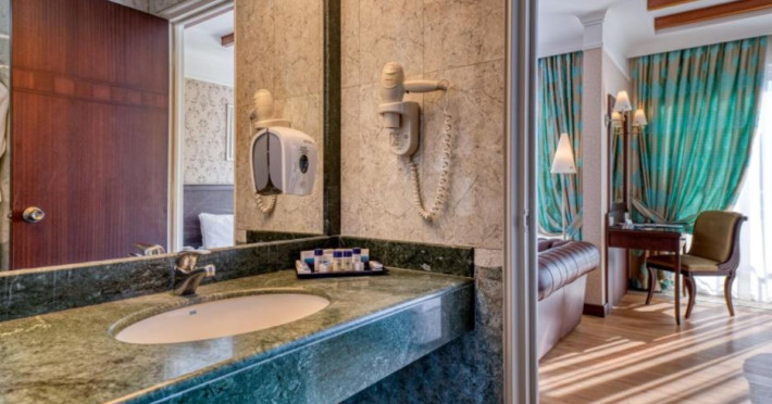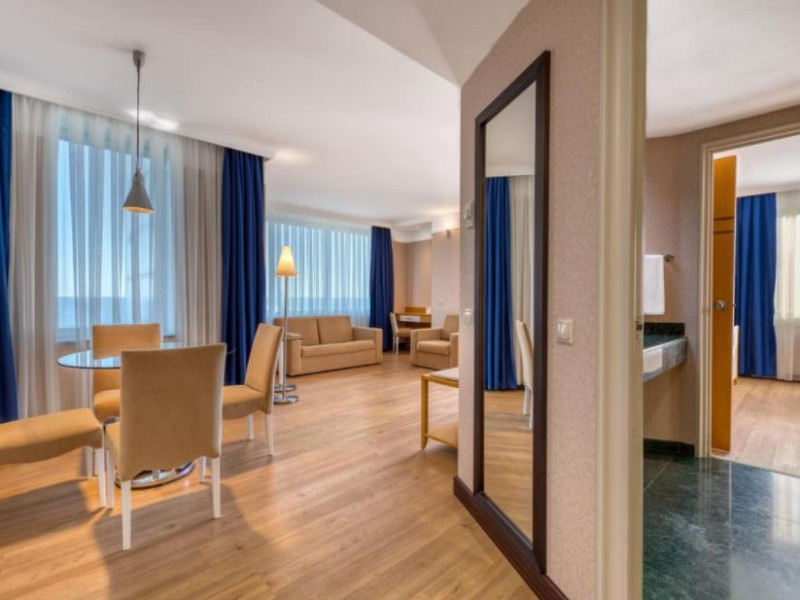 Hotelul detine un numar de 279 camere, iar acestea dispun de: aer conditionat, TV, minibar, baie cu dus, balcon, telefon.
