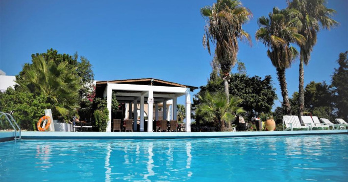 Rhodian Sun Hotel in Paradisi offers family rooms with sea, garden, pool, or mountain views. Each room includes air-conditioning, a balcony, private bathroom, and free WiFi. Guests enjoy a sun terrace, seasonal outdoor swimming pool, and free bicycles. The hotel provides a garden, restaurant, bar,. Additional amenities include a minimarket, games room, and childrens playground.