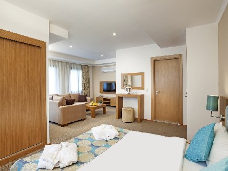 Construit in mai 2011, renovat in perioada noiembrie 2013-martie 2014 , hotelul dispune de 339 camere repartizate astfel: 68camere river room cu vedere la gradina (suprafata 30 mp, capacitate maxima 2+1 pax) 61camere river room cu vedere la piscine (suprafata 30 mp, capacitate maxima 2+1 pax) 176camere river suit (suprafata 36 mp, capacitate maxima 3+1 pax) 29 camere jasmine suit (suprafata 65 mp, capacitate maxima 4+1 pax) 5 camere magnolia villa ( suprafata 175mp, capacitate maxima 6+2 pax) Localizare: la 8km de Belek ,3km de Kadriye, 40km de centrul orasului Antalya si 30km de aeroportul din Antalya. Dotari camera: telefon, televizor, minibar (alimentat cu bauturi racoritare si apa ), aer conditionat centralizat, seif ,parchet ,balcon sau terasa. Minibarul se alimenteaza zilnic cu apa . Lenjeria si asternuturile se schimba de 3 ori pe perioada unui sejur de 7 nopti. Suplimentar : in camerele jasmin suit si magnolia vila exista 1 living room si bucatarie dotata cu frigider, plita , cuptor cu microunde plus masa bucatarie si 2 balcoane sau terase.Camerele magnolia villa mai au in plus jacuzzi . Facilitati hotel: restaurant principal ,2 restaurante a la carte: turcesc si pescaresc, bar la piscina ,river bar, bar la plaja, aqua bar, 4 piscine exterioare, 1 piscina de relaxare, 1 piscina pentru copii incalzita miniclub, 1 piscina exterioara pentru copii linga piscina principala , 1 piscina interioara, 1 aquapark , tenis, darts, tenis de masa, mini golf, centru fitness,mini club( 4-12ani),mini disco, baie turceasca, sauna, sali de masaj, animatie, baby sitting(2-10ani ). Servicii cu plata: telefon, fresh-uri si bauturile de import ;servirea bauturilor imbuteliate, centru Spa (masaje, peeling, tratamente pentru ingrijire corporala), spalatorie, servicii medicale, coafor, baby sitting, sporturi de apa, deplasarea cu vaporasul la plaja, inchirieri biciclete, echipament pentru pescuit, inchiriere masini. Accesul la plaja se poate face cu shuttle bus ( gratuit ) sau cu vaporasul la o alta plaja (contra cost ). Plaja de nisip. Sezlongurile si umbrelele sunt gratuite (pe baza de card) Alte informatii: - in restaurante tinuta este obligatorie; - rezervarea la restaurantele a la carte este permisa o data /sejur 7 zile contra cost ( informativ 5 eur/pers); - accesul animalelor de companie nu este permis; - recomandam turistilor sa solicite conceptul la receptia hotelului; Hotelul isi rezerva dreptul de a modifica conceptul in timpul sezonului fara a anunta in prealabil aceste modificari.