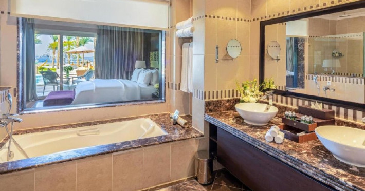 Dotari camere: Hotelul Rixos Sharm El Sheikh dispune de 695 camere dotate cu balcon/terasa, mini bar, aer conditionat, seif, wi-fi, TV satelit, telefon, baie cu cada, uscator de par, facilitati pentru preparat cafea/ceai.