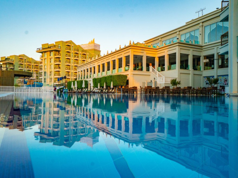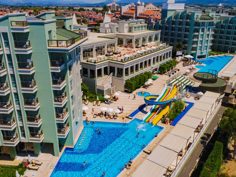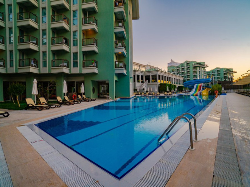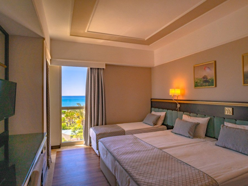 Facilitati hotel: Hotelul pune la dispozitia turistilor restaurant principal tip bufet deschis, restaurante a la carte cu specific mediteraneean si turcesc, baruri in cadrul complexului hotelier, disco club, piscine exterioare si interioare, tobogane, centru fitness, baie turceasca, sauna, volei pe plaja, piscina pentru copii, loc de joaca.