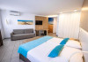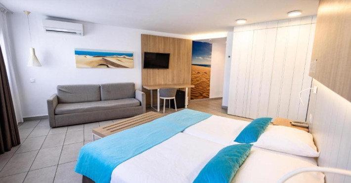 Camera dubla, Deluxe: baie/WC (uscator de par), aer conditionat, TV/sat., telefon, seif contra cost, balcon sau terasa.
