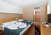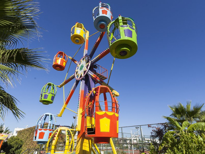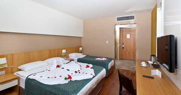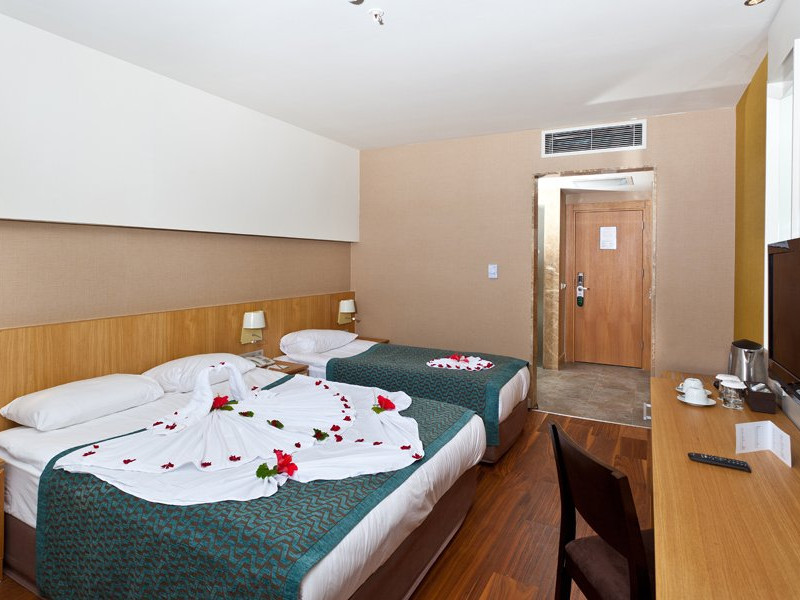 Sport si divertisment: Programe de divertisment in timpul zilei, competitii la piscina si la plaja, spactacole seara. Mini club cu programe speciale penru copii cu varste cuprinse intre 05-12 ani Plaja: Plaja privata de nisip, sezlonguri, umbrele si prosoape de plaja gratuite. Facilitati camere: Hotelul are in componenta sa 304 camere dintre care: 226 camere standard (27 mp) din care 3 sunt pentru persoane cu dizabilitati, 52 camere family (45 mp), 26 camere deluxe (32 mp), 12 camere large (35 mp). Toate camerele sunt modern si elegante si sunt dotate grup sanitar propriu, uscator de par, seif de inchiriat, telefon, TV satelit, aer conditionat, Wi-Fi gratis, minibar (reumplut zilnic cu bauturi racoritoare si bere) si balcon, unele cu vedere la mare.