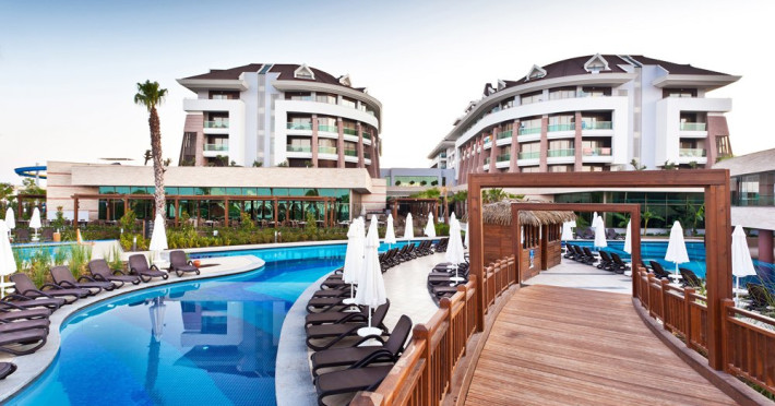 Facilitati hotel: Hotelul dispune de restaurant principal (tip bufet), restaurant a la carte(bucatarie italiana turceasca), baruri pe teritoriul complexului, disco club, piscina de interior (inchisa vara) si exterior pentru adulti si copii, tobogane, loc de joaca pentru copii, centru fitness, sauna, baie turceasca, terenuri de tenis, volei, baschet, volei pe plaja, gimnastica. Internetul WI-FI este disponibil gratuit in hotel.