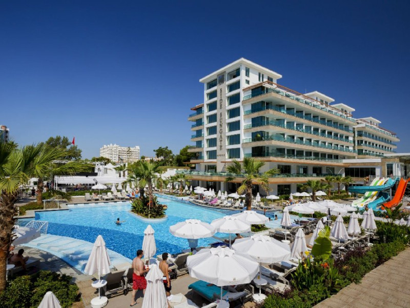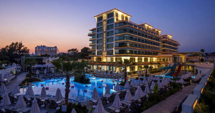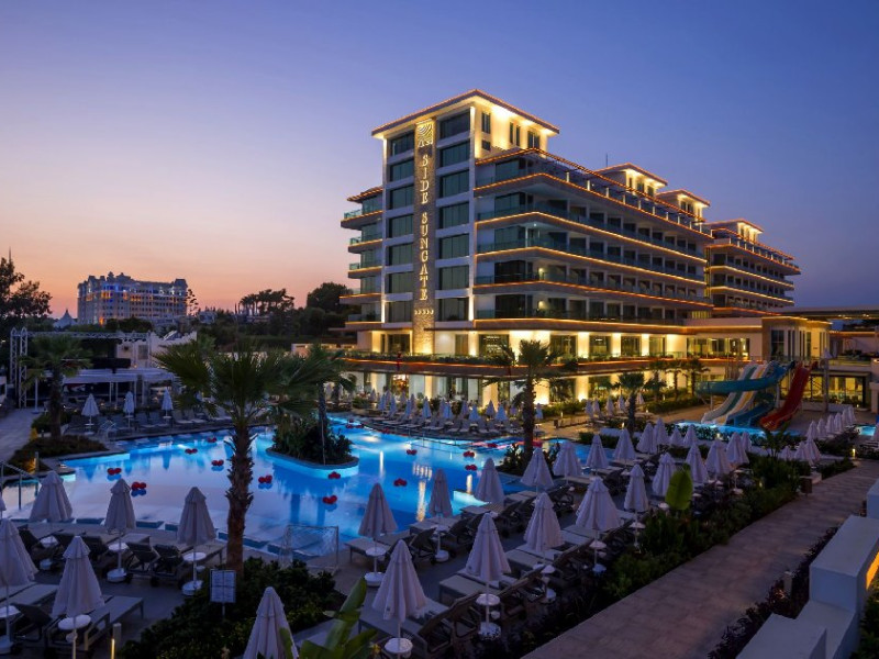 Descriere HOTEL SIDE SUNGATE: Hotelul SIDE SUNGATE a fost deschis in anul 2015, este construit pe un teritoriu cu o suprafata de 14000 mp si dispune de 232 de camere repartizate intr-un singur corp de cladire cu 5 etaje. Tip masa: All Inclusive Localizare HOTEL SIDE SUNGATE: Hotelul este situat la 8 km de orasul Side, la 12 km de Manavgat si la 55 km fata de aeroportul Antalya. Plaja: SIDE SUNGATE are plaja privata cu nisip situata la aproximativ 200 m distanta. Umbrelele, sezlongurile si prosoapele sunt gratuite la plaja. Dotari camere: Camerele hotelului dispun de: telefon, TV LCD, internet wireless, mini bar, seif, baie cu cabina de dus, uscator de par, balcon (exceptie camerele pentru persoanele cu dizabilitati), parchet, facilitati pentru preparare ceai / cafea. Facilitati generale HOTEL SIDE SUNGATE: Hotelul ofera oaspetilor sai urmatoarele facilitati: restaurant principal, 2 restaurante a la carte (italian, asiatic), patiserie, baruri (bar pe plaja si bar la piscina meniu a la carte, lobby bar bauturi gratuite intre orele 10:00-24:00), 2 piscine exterioare, piscina cu tobogane, piscina pentru copii cu tobogane, piscina interioara, programe de animatie, seri tematice, discoteca, centru spa, sauna, hammam, centru fitness, darts, aerobic, polo, gimnastica in apa, volei pe plaja, internet wireless. Servicii cu plata: restaurantele a la carte, fresh-uri din fructe, masaj si alte tratamente in centrul spa, servicii medicale, sala de jocuri, play station, sporturi acvatice, seif pe plaja. Facilitati copii HOTEL SIDE SUNGATE: Hotelul pune la dispozitia copiilor: mini club (4-12 ani), piscina pentru copii, loc de joaca. Alte informatii: - animalele de companie nu sunt permise; - in restaurante tinuta este obligatorie; - accesul in restaurantele a la carte se face in baza unei rezervari; - in functie de conditiile meteorologice, programul de functionare a restaurantelor si barurilor se poate modifica; - hotelul isi rezerva dreptul de a modifica conceptul in timpul sezonului fara a anunta in prealabil aceste modificari. Clasificarea agentiei: 5* Pagina web: www.sidesungate.com