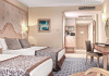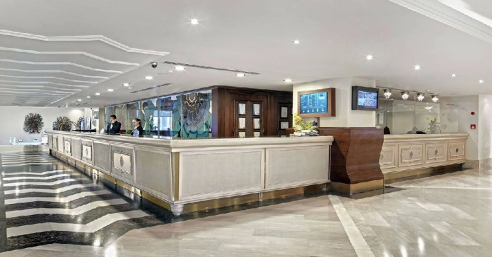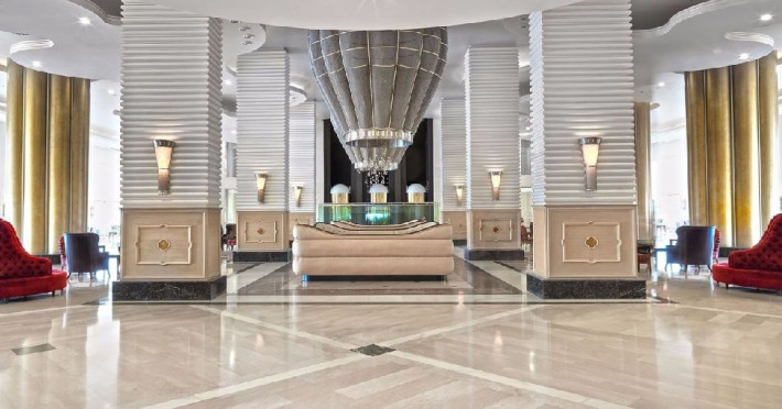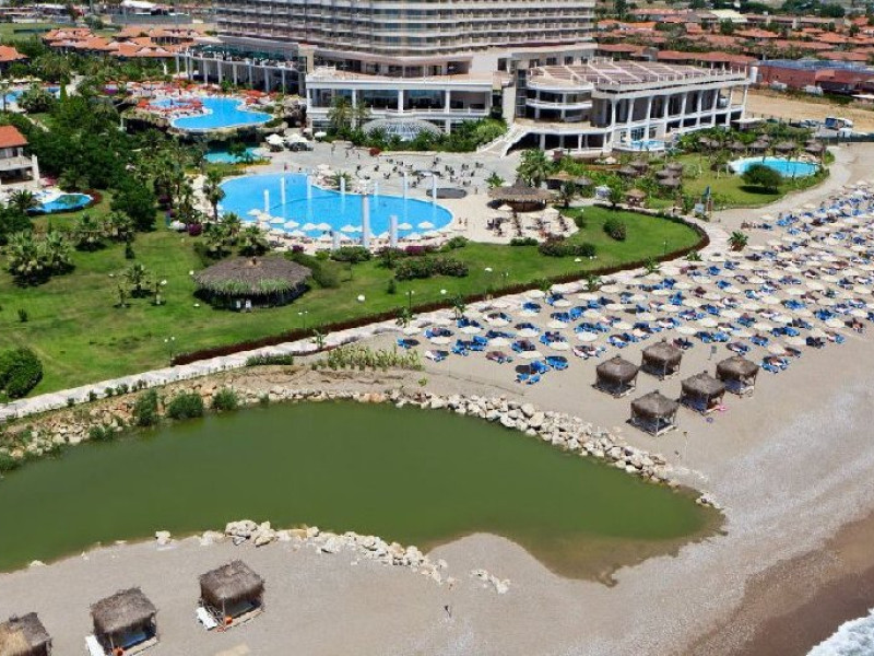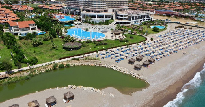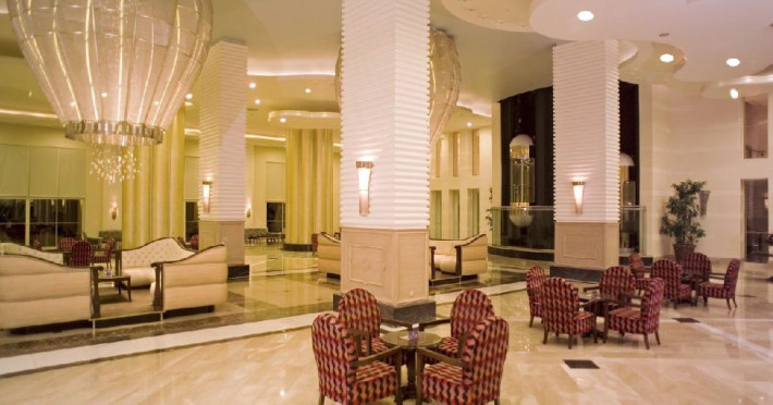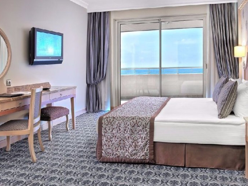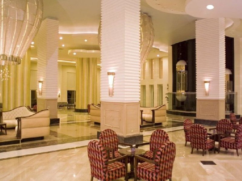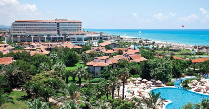 Facilitati hotel: Hotelul dispune de: un restaurant principal tip bufet, 12 restaurante a la carte: Akdeniz (bucataria mediteraneana), Santa Lucia (bucataria italiana), Moulin Rouge (bucataria franceza), Volga (bucataria rusa), Ganesha (bucatarie indiana), Tepenyaki (asiatic), Miyaki (sushi), Azteka (bucataria mexicana), Otoman (bucataria turceasca), Mongolian si BBQ,, 9 baruri, 4 piscine exterioare, 2 piscine interioare, cinema, coafor, baie turceasca, sauna, baie cu aburi, Jacuzzi, sala de fitness, aerobic, pilates, aqua aerobic, volei pe plaja, tenis de masa, darts, animatie, muzica live.