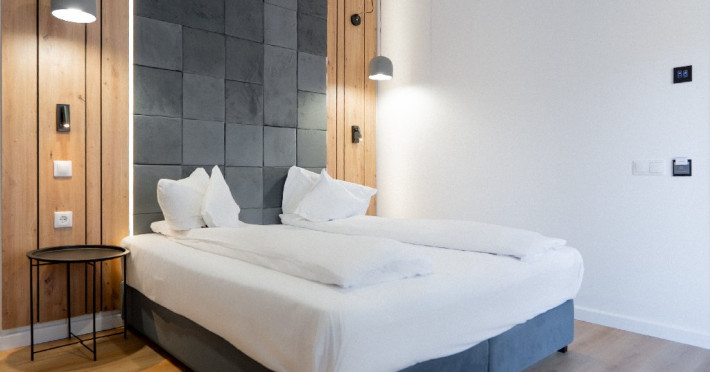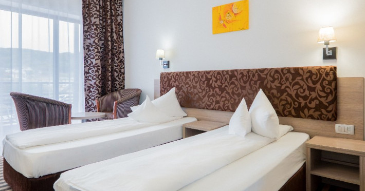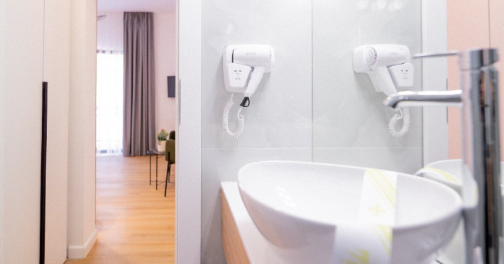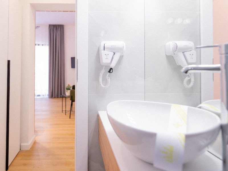 Apartamentul: - potrivit pentru familiile de doi adulti si doi copii; - alcatuit din doua camere, una cu pat dublu si una cu canapea extensibila; - apartamentele se afla in corpul B al hotelului; - in apartament se pot caza cel mult doi adulti si doi copii;