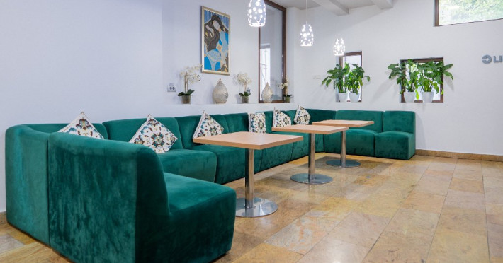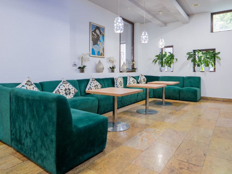 Sala de conferinte de 120 locuri - complet echipata pentru buna desfasurare a evenimentelor. - Wi-Fi cu acoperire in tot hotelul; - Terasa exterioara; - Foisor - 16 persoane; - Platforma sport; - Protap, ceaun sau gratar cu preparare in aer liber; - Se pot organiza excursii sau foc de tabara