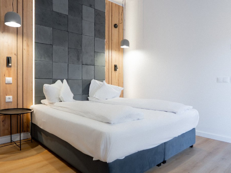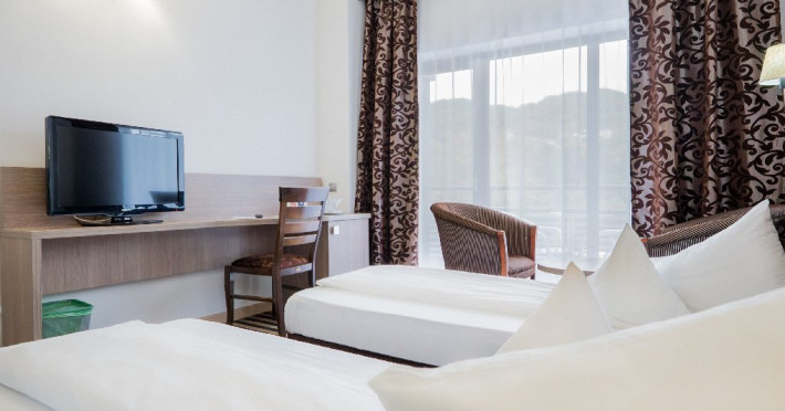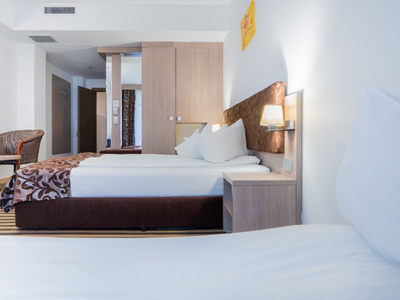 Camera Executive: - potrivita pentru familiile de doi adulti si doi copii sau pentru doi adulti care doresc o camera foarte spatioasa; - camera cu pat dublu si canapea dubla extensibila; - camerele executive se afla in corpul A al hotelului; - in camerele executive se pot caza cel mult doi adulti si doi copii;