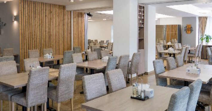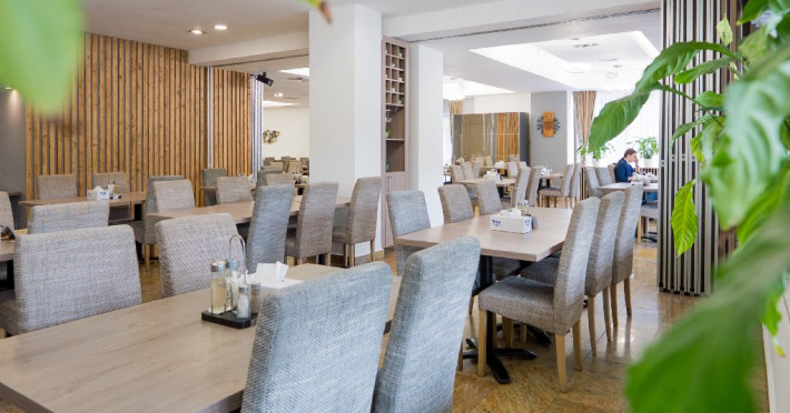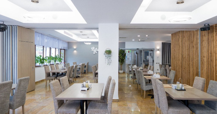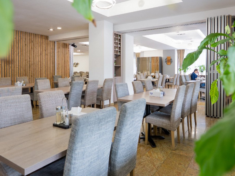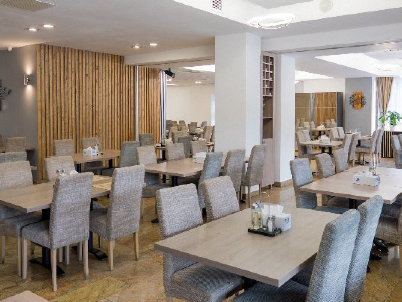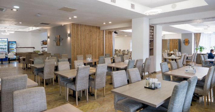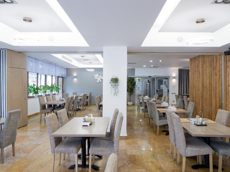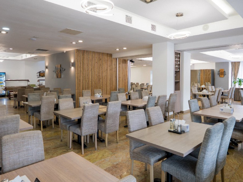 Restaurantul: Are categoria 3*, salonul avand o capacitate de 200 locuri. Este prevazut cu instalatie de sonorizare si iluminat ergonomic. Bucataria este dotata cu utilaje de prelucrare, sali de preparare moderne care asigura calitate serviciilor prestate. Meniul este variat si satisface cele mai exigente gusturi. Restaurantul este completat cu o terasa acoperita, cu 9 locuri. Barul: Clasificat la categoria 3* are 25 locuri si este completat cu o terasa deschisa in sezonul cald.
