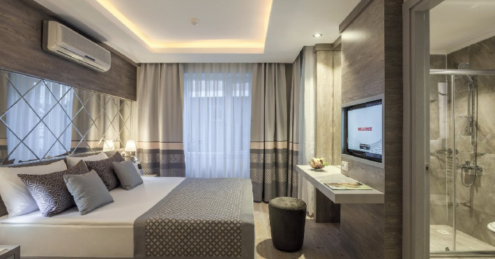 Dotari camere: Camerele hotelului dispun de: TV LCD, baie cu cabina de dus, telefon, aer conditionat, mini bar, facilitati pentru prepararea ceaiului si cafelei, seif, balcon (unele camere).