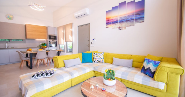 Near Laganas Beach. When you stay at this villa in Zakynthos, youll be near the beach, within a 5-minute drive of National Marine Park of Zakynthos and Laganas Beach. This 4.5-star villa is 1.2 mi (1.9 km) from Kalamaki Beach and 4.7 mi (7.6 km) from Zakynthos Ferry Terminal. Treat yourself to a stay in this individually decorated villa, which features a private pool and an LCD TV. The villa has a pillowtop bed. Theres a private patio. A kitchen is outfitted with a full-sized refrigerator/freezer, an oven, and a stovetop. Complimentary wireless Internet access keeps you connected, and digital programming is available for your entertainment. Take advantage of recreation opportunities such as an outdoor pool or take in the view from a terrace and a garden. Additional amenities at this villa include complimentary wireless Internet access, concierge services, and barbecue grills.