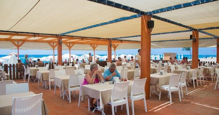 CONCEPT ULTRA ALL INCLUSIVE Ultra all Inclusive - tip bufet pentru micul dejun, pranz, cina, gustari dupa-amiaza, bufet si restaurant special pentru copii, restaurant pe plaja cu gustari, bere si bauturi racoritoare, toate bauturile locale si unele standard din import alcoolice si racoritoare, sucuri naturale doar la micul dejun, inghetata intre anumite ore, bar pe plaja intre orele 10.00-18.00, restaurante a la Carte cu rezervare in avans si o singura data pe sejur. Nu sunt incluse in concept: bauturile premium din import, vinurile speciale, cocktail-urile, bauturile de lux, sucurile de fructe proaspete, bauturile imbuteliate, room service.