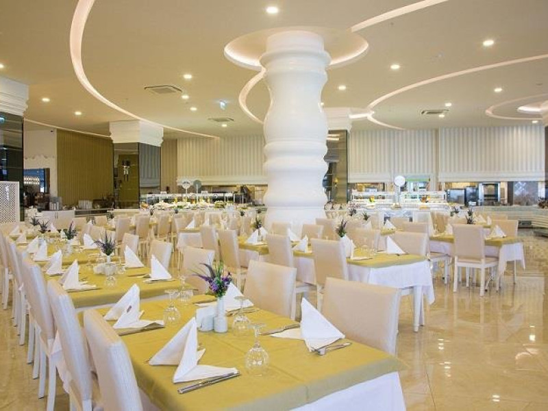 Facilitati hotel:Restaurant principal tip bufet, restaurante a la carte: Paha (Turkish cuisine), Toscano (Italian cuisine) si Irmak (Fish restaurant), baruri in anumite zone ale complexului. Contra cost: servicii medicale, baby sitting, spalatorie, curatatorie, salon de coafura, telefon, fax, jocuri pe calculator, centru comercial, rent a car.