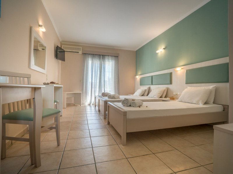 Zante Atlantis Hotel is situated in the calm side of Laganas bay and offers its services since 2004. It is a small family hotel that provides a lot of facilities in order to satisfy every customer. It operates from 1st May to 30th October. It is well communicated, 500m from the beach, 5km from the airport and about 7km from Zakynthos town.
