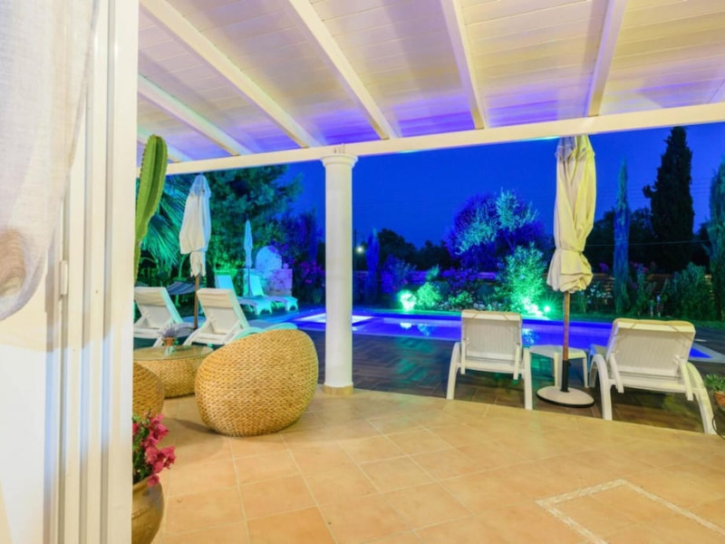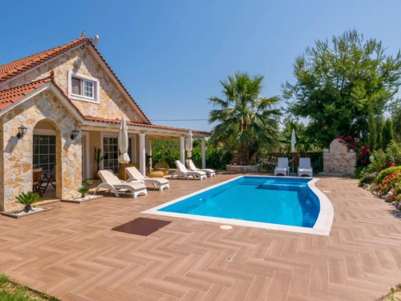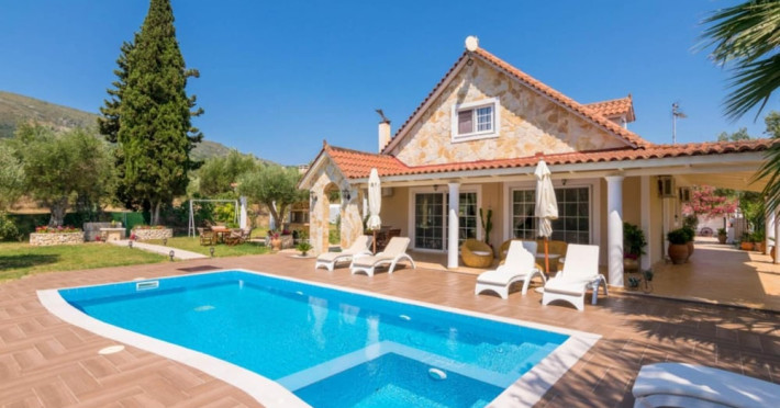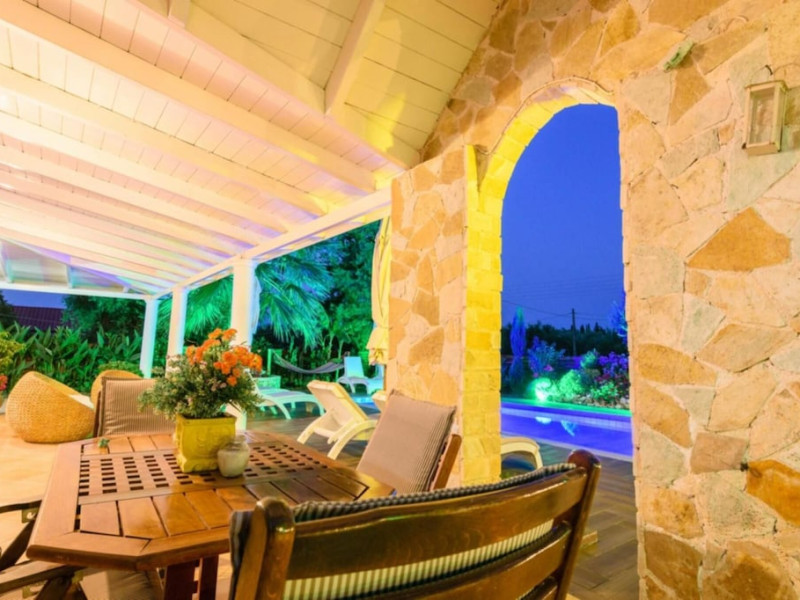 In Zakynthos. With a stay at this villa in Zakynthos, youll be within a 10-minute drive of National Marine Park of Zakynthos and Laganas Beach. This 4-star villa is 3.7 mi (6 km) from Kalamaki Beach and 5.1 mi (8.3 km) from Zakynthos Ferry Terminal. Make yourself comfortable in this air-conditioned villa, which features a fireplace and a private pool. A kitchen is outfitted with a refrigerator, an oven, and a stovetop. Complimentary wireless Internet access is available to keep you connected. Conveniences include a safe and a microwave. Make use of convenient amenities, which include complimentary wireless Internet access and barbecue grills.