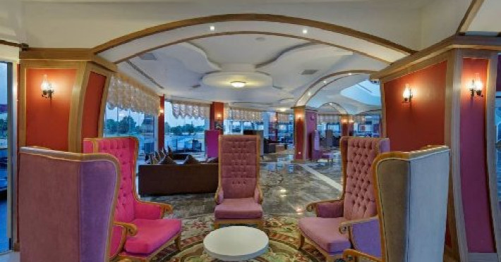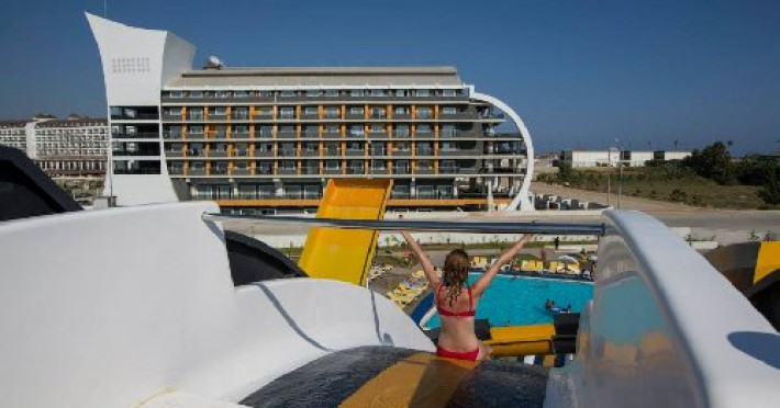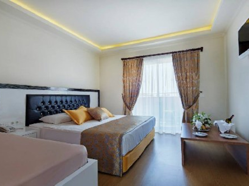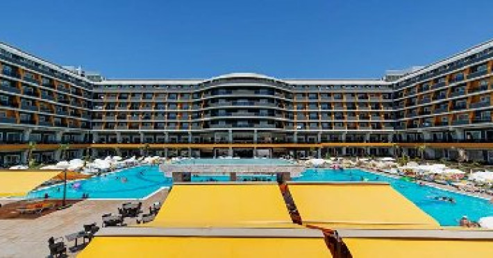 Construit in anul 2013, cu o suprafata de 14.100 mp, hotelul are 425 camere, repartizate astfel: 248 camere standard cu vedere la mare (suprafata 24 mp, capacitate maxima 3+1 pax); 76 camere standard (24 mp, capacitate maxima 3+1 pax); 62 camere family dublex cu vedere la mare (suprafata 30 mp, capacitate maxima 4 pax); 20 camere family dublex (suprafata 30 mp, capacitate maxima 4 pax); 8 camere family suite (suprafata 30 mp);2 camere family suite dublex (suprafata 60 mp); 4 camere Presidential Suite (suprafata 77 mp); 1 king suite (suprafata 140 mp); Localizare: pe malul marii, la 15 km de Alanya si la 100 km de aeroportul din Antalya. Dotari camera: minibar, televizor LCD, aer conditionat, telefon, seif, balcon, uscator de par, internet wi-fi. Facilitati hotel: restaurant principal, 4 restaurante a la carte (pescaresc, turcesc, mexican si italian), 7 baruri, piscina exterioara si piscina interioara ,piscina pentru copii, sala de jocuri, biliard, centru Spa, baie turceasca si sauna, mini club, loc de joaca pentru copii, magazin de suveniruri, animatie, tenis de masa, darts, voley pe plaja, jacuzzi, fitness, internet wi-fi. Servicii cu plata: sala de jocuri, internet cafe, servicii Spa extra (masaj, peeling, etc), doctor, coafor, rent-a-car, sporturi nautice motorizate, baby sitting, room service. Plaja: cu nisip si pietris si un dig. Plaja are o lungime de 100 m, sezlongurile si umbrela sunt gratuite. Alte informatii: animalele de companie nu sunt permise; in functie de conditiile meteorologice, programul de functionare a restaurantelor si barurilor se poate modifica. Hotelul isi rezerva dreptul de a modifica conceptul in timpul sezonului fara a anunta in prealabil aceste modificari.
