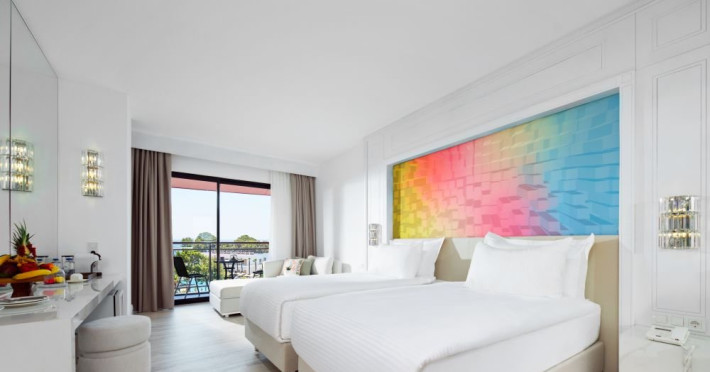 Dotari camere: Hotelul are camerele dotate cu: kit igiena dentara, halat si papuci, baie cu uscator de par, telefon, aer conditionat, TV satelit, minibar, facilitati preparare ceai/cafea, meniu de perne, geanta de plaja, fier de calcat cu abur.