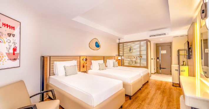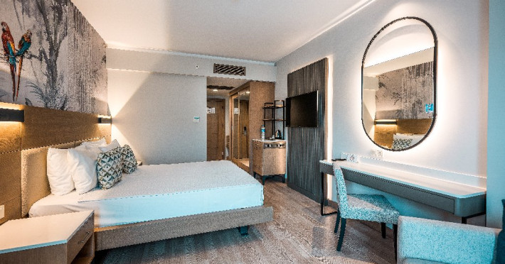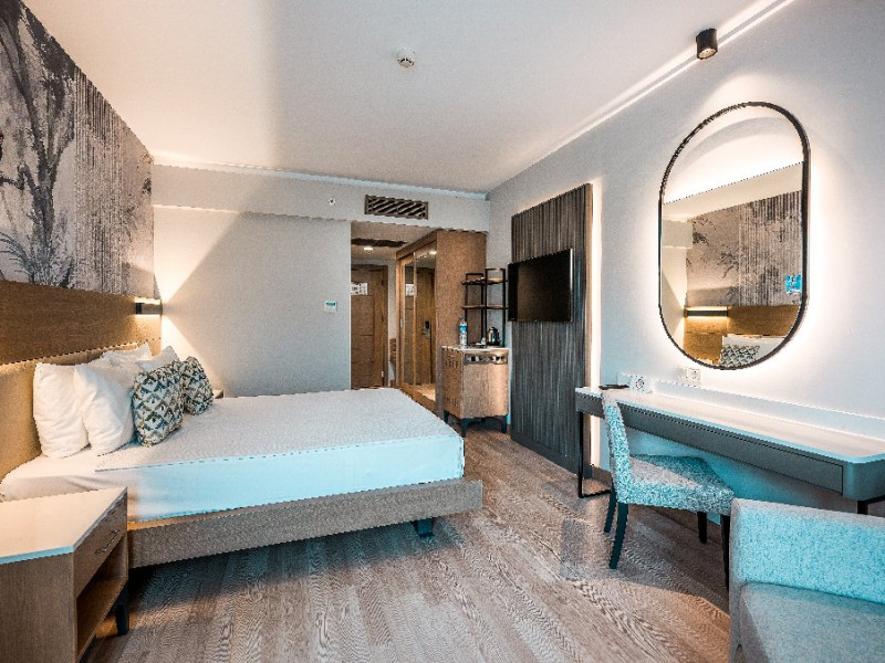 Dotari camere: Fiecare camera de la Belek Beach Resort are un decor simplu si modern, o zona de relaxare si o baie privata cu uscator de par. Majoritatea camerelor ofera vedere la mare.