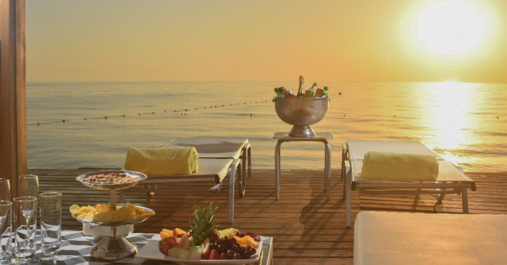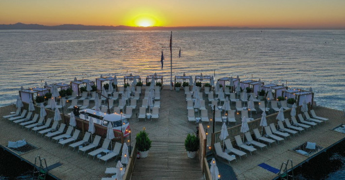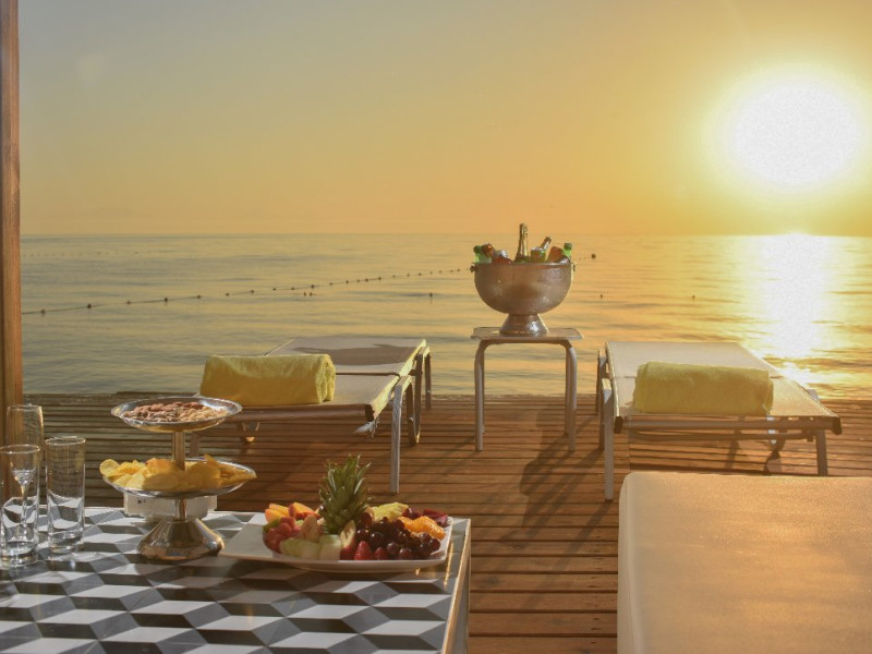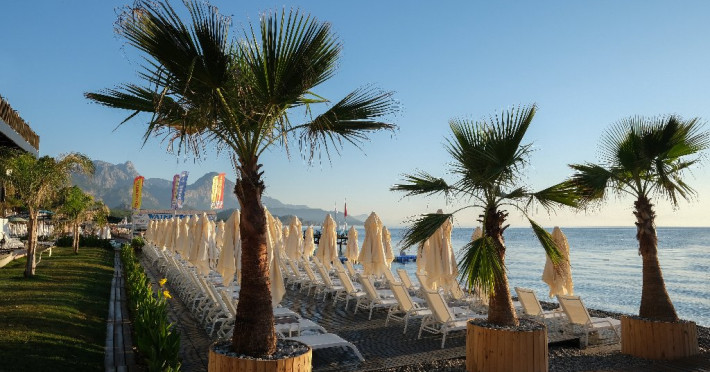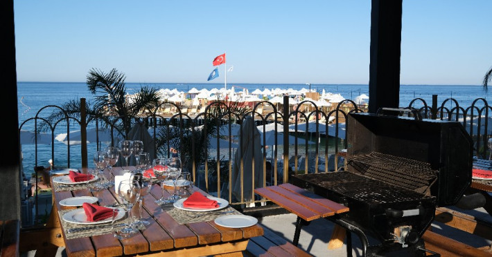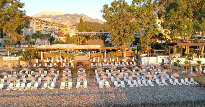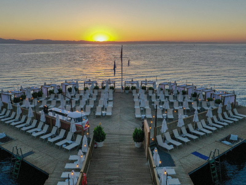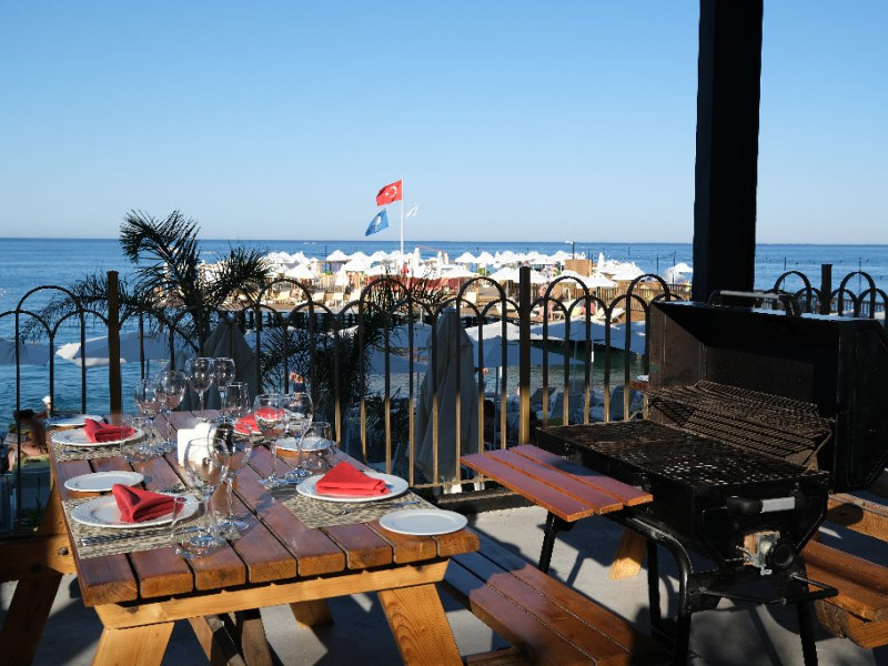 Plaja: Plaja hotelului este cu nisip si pietricele si are o lungime de 95 m. Umbrelele, sezlongurile si prosoapele sunt gratuite la plaja. Pontonul si serviciile pe plaja sunt disponibile incepand cu data de 1 mai.