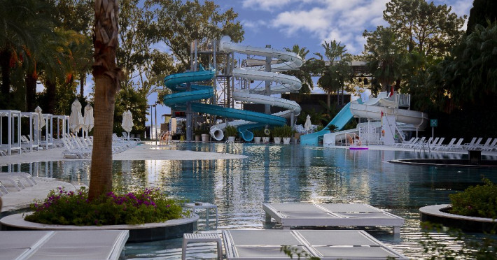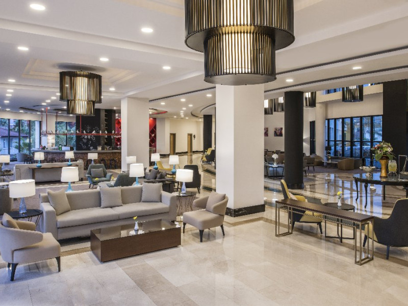 Facilitati generale: Hotelul ofera oaspetilor sai urmatoarele facilitati: restaurant principal, 4 restaurante a la carte, patiserie, inghetata, 5 baruri, muzica live, program de animatie, petreceri tematice, discoteca, centru fitness, tenis, basket, volei, tenis de masa, darts, sauna, piscina interioara, baie turceasca, piscina exterioara cu 2 tobogane, piscina exterioara pentru copii, piscina cu apa de mare, sali de conferinta, bufet pentru copii in restaurant, mini disco, mini club, loc de joaca, diverse jocuri si activitati.Servicii cu plata: restaurantele a la carte, biliard, play station, sporturi acvatice, lectii de tenis, masaj si alte tratamente de intretinere, telefon, fax, curatatorie.