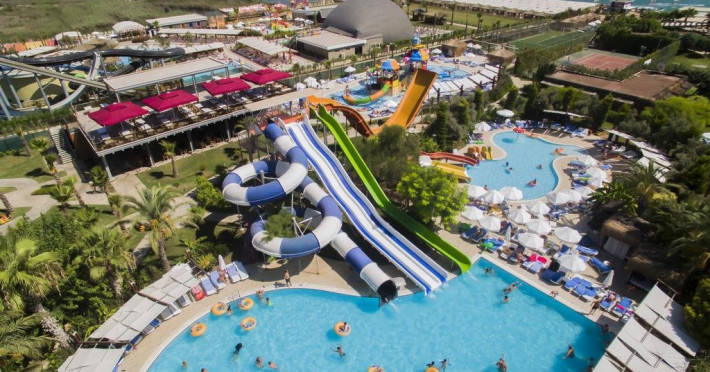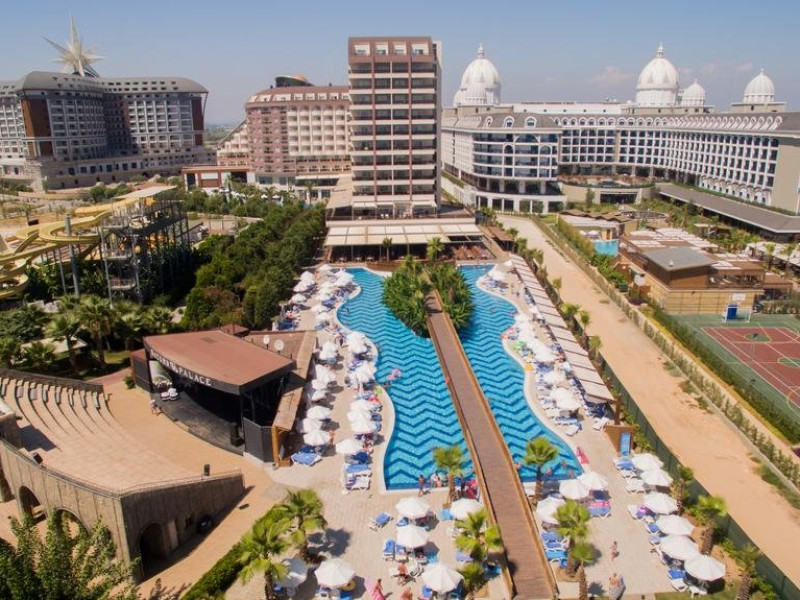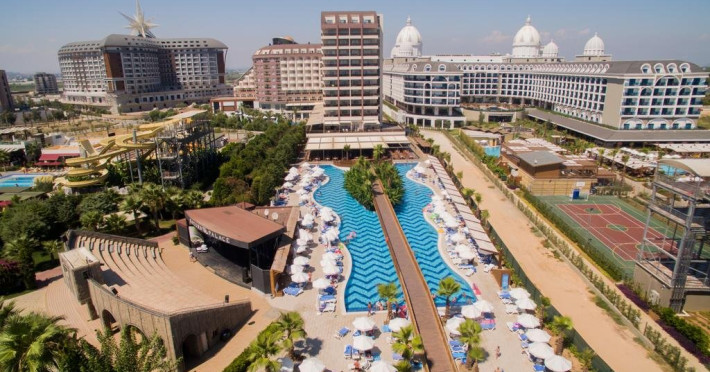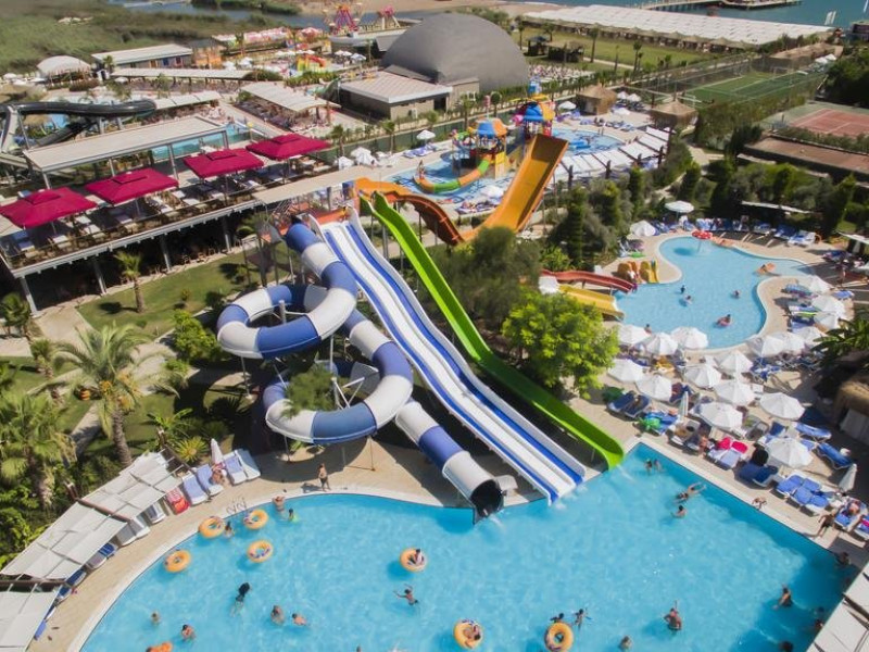 Facilitati hotel: Hotelul ofera oaspetilor sai multiple facilitati: restaurant principal, 4 restaurante a la carte, 6 baruri,  2 piscine  exterioare pentru adulti, 2 piscine exterioare pentru copii, piscine cu tobogane pentru adulti si copii, 1 piscina interioara pentru adulti si 1 piscina interioara pentru copii, mini club, centru fitness, centru spa, aerobic, sauna, baie turceasca, tenis, darts, tenis de masa, sah, animatie, discoteca, spectacole in timpul serii, loc de joaca pentru copii.Servicii cu plata: restaurantele a la carte, fresh-urile de fructe, tratamente in centrul Spa, servicii medicale, servicii curatatorie, coafor, shopping center.