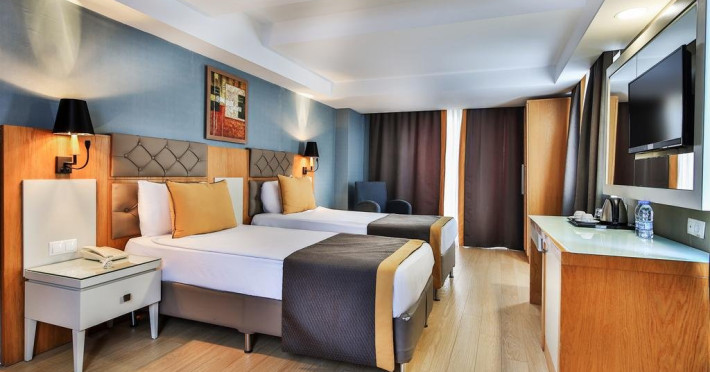 Dotari camere: La hotel beneficiati de camere intre 28 si 60 mp dotate cu: telefon, TV satelit, seif, minibar, aer conditionat, uscator de par, balcon, Wi-fi.