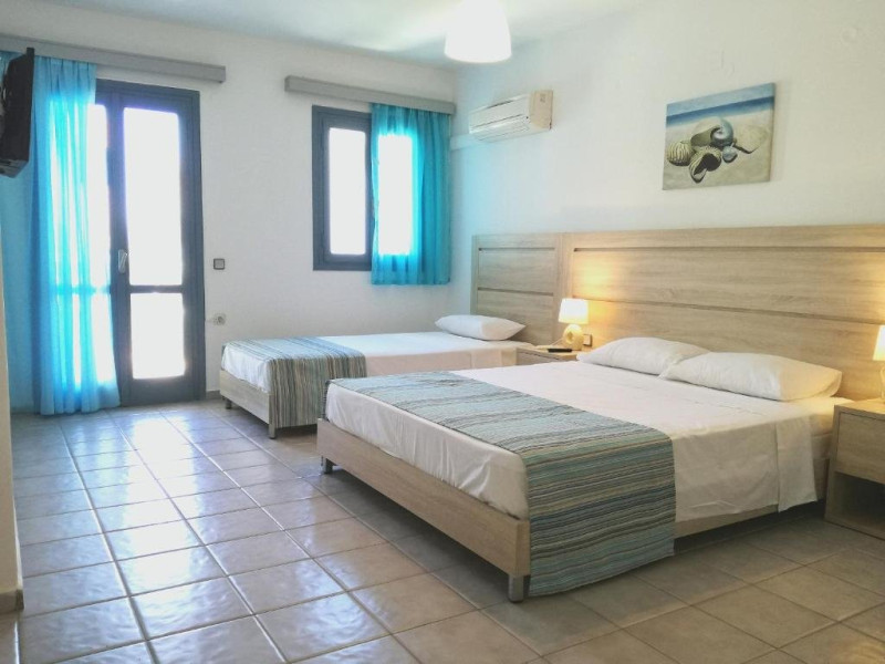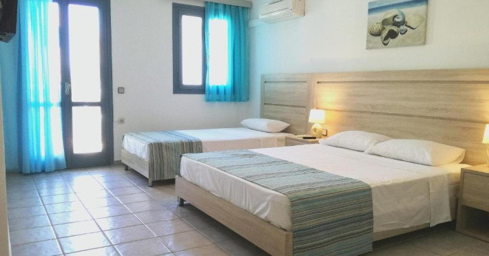 Dotari camere: Toate camere au aprox. 26 mp si au vedere la piscina sau mare. Sunt dotate cu aer conditionat, balcon sau terasa, seif (cu plata, 2 euro/zi), TV satelit, baie cu uscator de par, frigider. Se asigura baby cot la cerere (6 euro/zi).