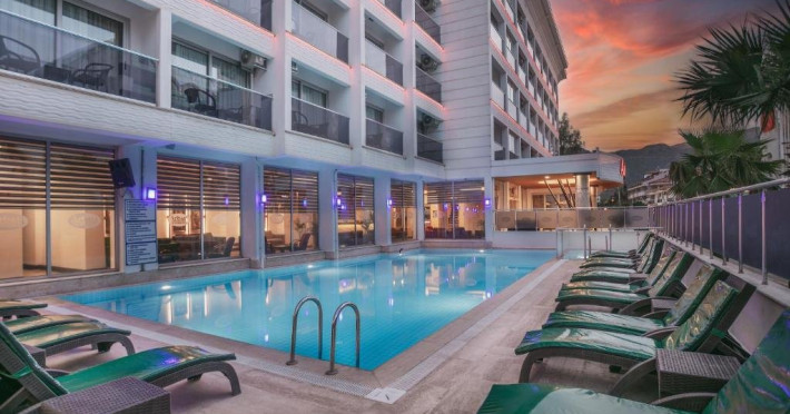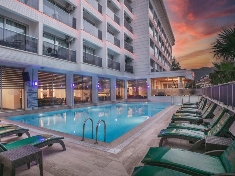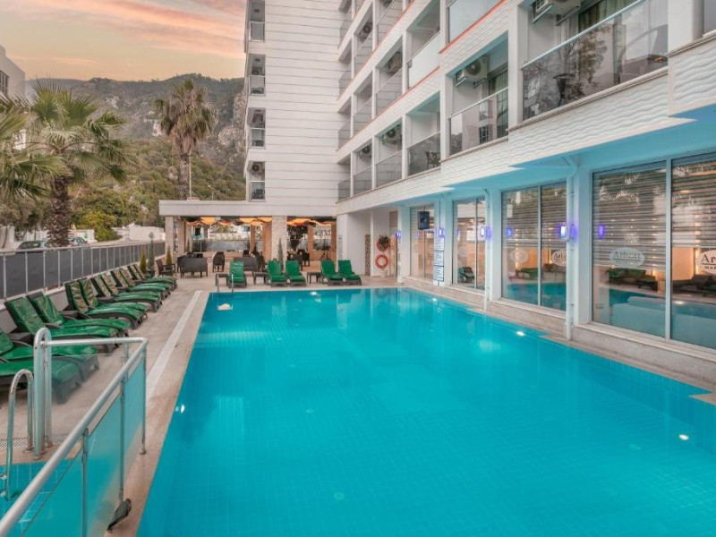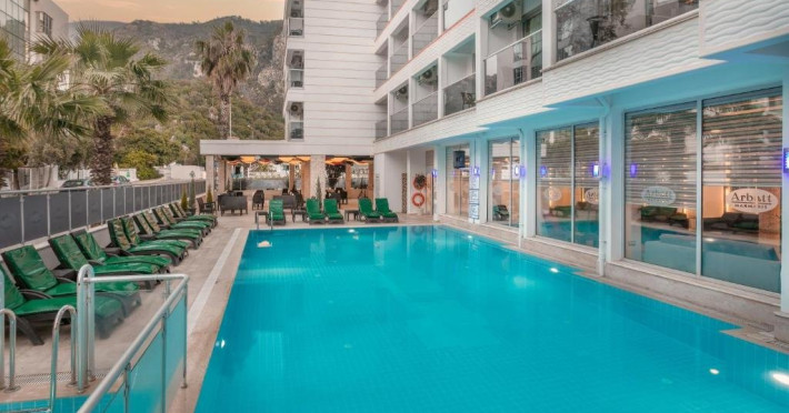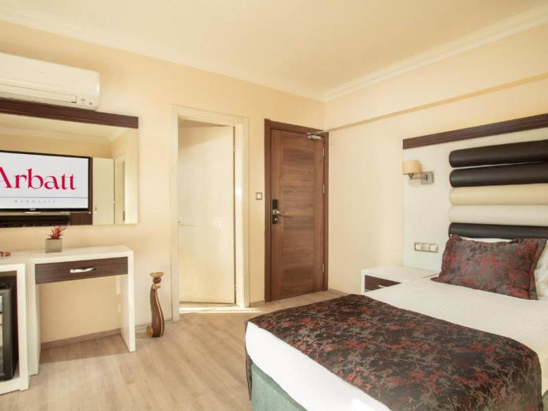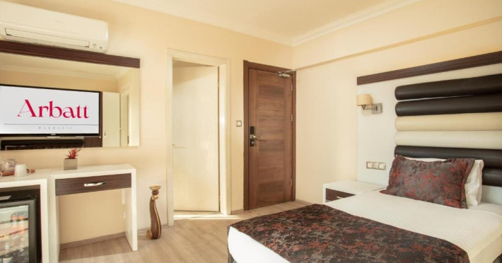 Descriere: Arbatt Marmaris este un hotel de 4 stele care ofera servicii All Inclusive si care este localizat in Marmaris, Turcia. Localizare: Hotelul Arbatt Marmaris este situat la 200 de metri de plaja Icmeler si la 1.1 km de plaja Icon. La 7.4 km se afla un centru de cumparaturi numit Karacan Point Center, unde oaspetii pot face cumparaturi. Aeroportul cel mai apropiat de unitatea de cazare, Aeroportul Internationa Rhodes, la 72 de km de acesta. Facilitati hotel: Hotelul Arbatt Marmaris dispune de urmatoarele facilitati: piscina exterioara, parcare privata, restaurant si bar. Dotari camere: Camerele hotelului sunt dotate cu: aer conditionat, TV cu ecran plat. Unele camere au vedere piscina Site: https://arbatthotels.com/en