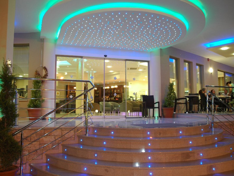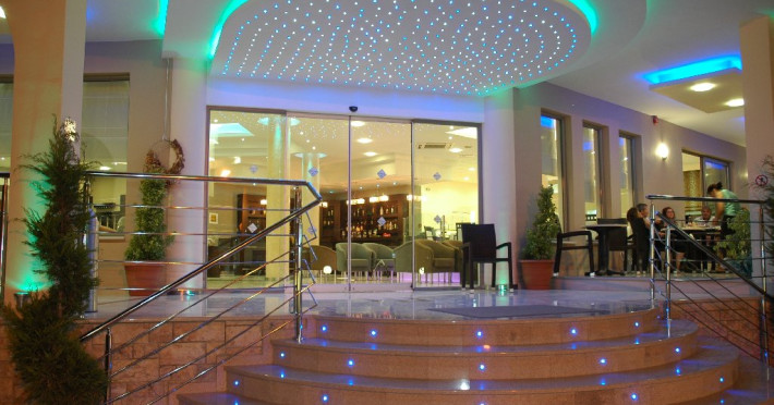 Facilitati hotel: Receptie deschisa 24 de ore pe zi, hol, cutie de valori centrala (contra cost), Wi-Fi in zonele publice (gratuit), colt TV satelit, magazin de suveniruri, mini piata, magazin de bijuterii, piscina in aer liber, terasa, sezlonguri si umbrele (gratuit la piscina, cu taxa suplimentara la plaja), gradina, parcare (gratuita), doctor de garda (contra cost).
