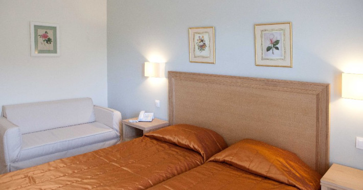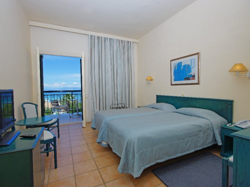 Descriere: Cele trei cladiri principale inconjurate de gradini verzi care se intinde pe tot drumul spre plaja oferind un cadru linistit cu vedere la muntii. Cazarea cuprinde camere duble complet echipate, cu lumina naturala, aer gratuit stare, Wi-Fi si un balcon sau o terasa cu grdina, piscina sau lateral cu vedere la mare. In plus, un teren de tenis, o sala de fitness, tratamente Spa, o taverna si un bar pe plaja sunt, de asemenea, la dispozitia oaspetilor.