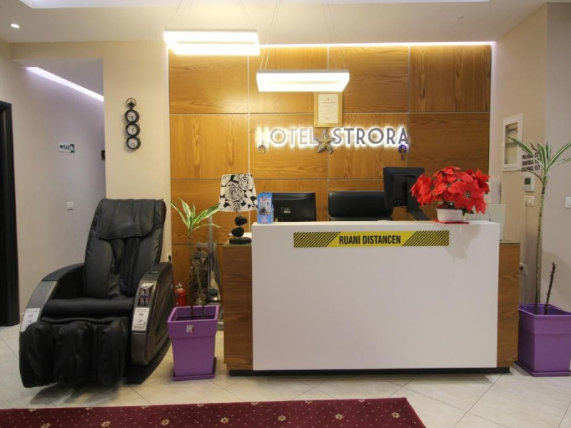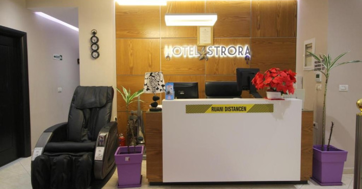 Hotelul Strora este localizat la 150 m distanta de plaja si dispune de parcare, mini-market, bar, restaurant, camere moderne, facilitati excelente. In apropierea hotelului se afla o statie de autobuz. Centrul orasului Sarandë se afla la 1 km, iar Butrint la 16 km.