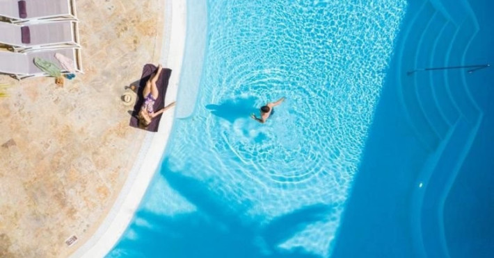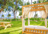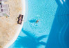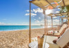 Plaja privata cu nisip, situata direct langa hotel, sezlonguri si umbrele gratuite.