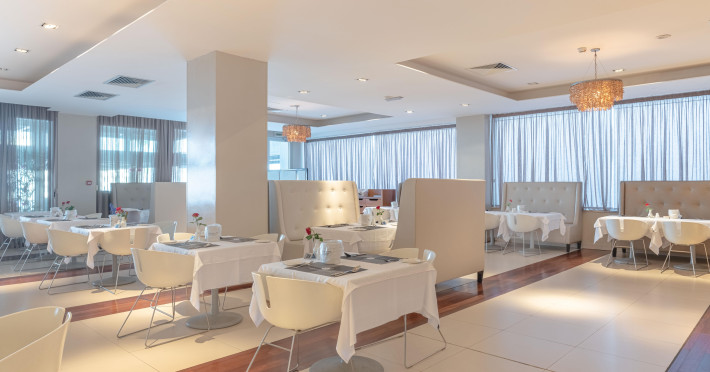 • restaurant principal "Flavours Restaurant": bucatarie greceasca, internationala, italiana, mediteraneana, mexicana, orientala, regionala, spaniola, peste/fructe de mare, preparate la gratar; mese fara gluten: la cerere, meniu pentru copii, mese fara lactoza: la cerere, mese vegetariene, bufet, zilnic 07:00 - 10:30, 12:30 - 15:00 si 19:30 - 22:00, cu aer conditionat, cu terasa, scaune inalte pentru copii, imbracaminte adecvata
