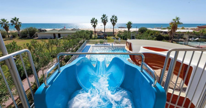 Facilitati hotel: Hotelul pune la dispozitia turistilor: receptie 24h, restaurant, diferite tipuri de bar, patiserie, sala de fitness, disco, doctor, spalatorie, piscina, piscina pentru copii, spectacole de animatie, miniclub pentru copii, loc de joaca pentru copii, aqua park, mini golf, biliard, tenis de masa, tenis de camp, teren de baschet, sporturi nautice pe plaja, sezlonguri si umbrele, parcare, spa si centru wellness cu baie turceasca, sauna, masaj, zona de plaja privata cu sezlonguri si umbrele.