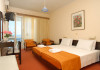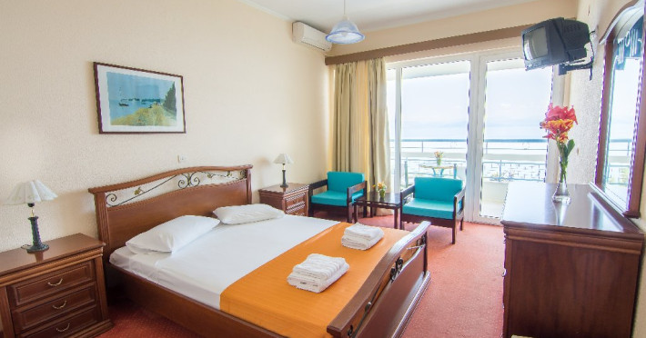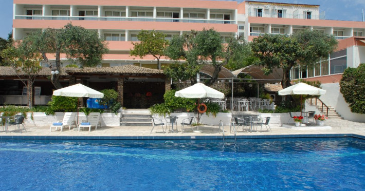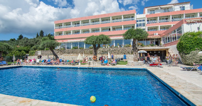 ALEXANDROS HOTEL - 4* Alexandros Hotel is set in a natural landscaped area under the famous palace of Achilleion overlooking the iconic Pontikonisi islet, located approximately 400 m from the pebbled beach and 5 km from Corfus airport. The property houses a four-floor building consisting of 95 elegant and air-conditioned rooms with laminated floors, dark-wood furnishings, sound-proof windows and a furnished balcony. The property is not suitable for disabled guests. Official category: 4 stars ACCOMMODATION 95 units in total: Single Room Inland View or Side Sea View or Sea View approx. 24 m2 (max 1 pax: 1 double bed or 2 twin beds): standard accommodation facilities & services Promo Double Room approx. 25 m2; no view (max 2 pax: 1 double bed or 2 twin beds): standard accommodation facilities & services Double Room Inland View or Side Sea View or Sea View approx. 25 m2 (max 2+1 pax: 1 double bed or 2 twin beds, 1 extra single bed): standard accommodation facilities & services Family Room Mountain View or Side Sea View or Sea View approx. 26 m2; open plan (max 2+2 pax: 1 double bed or 2 twin beds, 1 bunk bed): standard accommodation facilities & services Three-Bedroom Family Room Sea View approx. 50 m2; 3 separate bedrooms (max 2+4 pax: 2 double beds, 2 single beds): standard accommodation facilities & services Standard accommodation facilities & services: air-conditioning/heating (free), safety deposit box (free), satellite TV, mini fridge, bathtub/WC or shower/WC, hairdryer, bathroom amenities, balcony, 12-hour room service, wake-up service, maid service (daily), towel change (3 times per week), linen change (3 times per week) GENERAL FACILITIES & SERVICES 24-hour reception, lobby, lounge with terrace, satellite TV corner, internet corner (extra charge), Wi-Fi in public areas (free), mini market, luggage room, souvenir shop, swimming pool (10:00-18:00), pool/beach towels (eur 10 deposit), sunbeds & umbrellas (free at the pool, with extra charge at the beach by an off-site third party), garden, on-site parking (free), first-aid kit, doctor on call (extra charge) FOOD & BEVERAGE/BOARDING TYPE (AI) Main buffet restaurant, main bar, pool snack bar All Inclusive Operation hours: 10:00-23:00 Breakfast is American buffet (07:30-10:00) Drinks (10:23:00) include soft drinks, juices, filter coffee, tea, local draught beer, house wine, local alcoholic drinks (brandy, ouzo, vodka, gin, rum, tequila, whiskey) Lunch is buffet (12:30-14:00) A variety of snacks including toasts, pizza, pies & cakes are served (16:00-17:00) Dinner is buffet (19:00-21:00) Ice cream is served at the restaurant during lunch & dinner CHILDREN & INFANTS Baby cot (on request, free of charge), high chair (on request), integrated childrens pool (10:00-18:00) ENTERTAINMENT & ANIMATION Evening entertainment (3 nights per week) SPORTS & ACTIVITIES Table tennis (free), billiards (extra charge) BEAUTY & WELLNESS Massage (on request with extra charge), body & facial treatments (on request with extra charge) ACCEPTED CREDIT CARDS Visa, MasterCard ADDITIONAL INFORMATION The operation of certain outdoor venues & facilities is subject to weather conditions Pets are not allowed There is no Wi-Fi in the rooms WEBSITE: https://www.alexandros-corfu.com/en